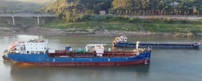 9月4日,由中國船舶川東造船為中遠海運石油建造的6300噸不銹鋼化學品船緩緩離開該公司1號碼頭,拖航到澄西船廠進行交船前的掃尾工作。